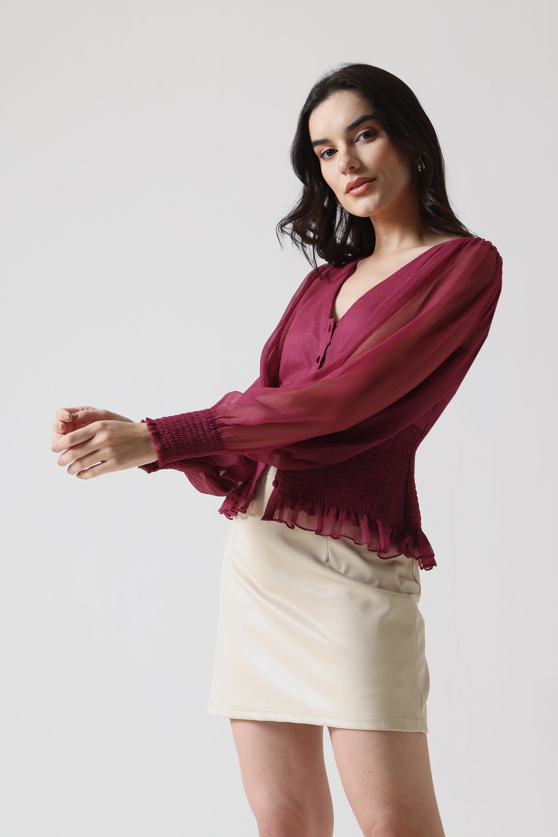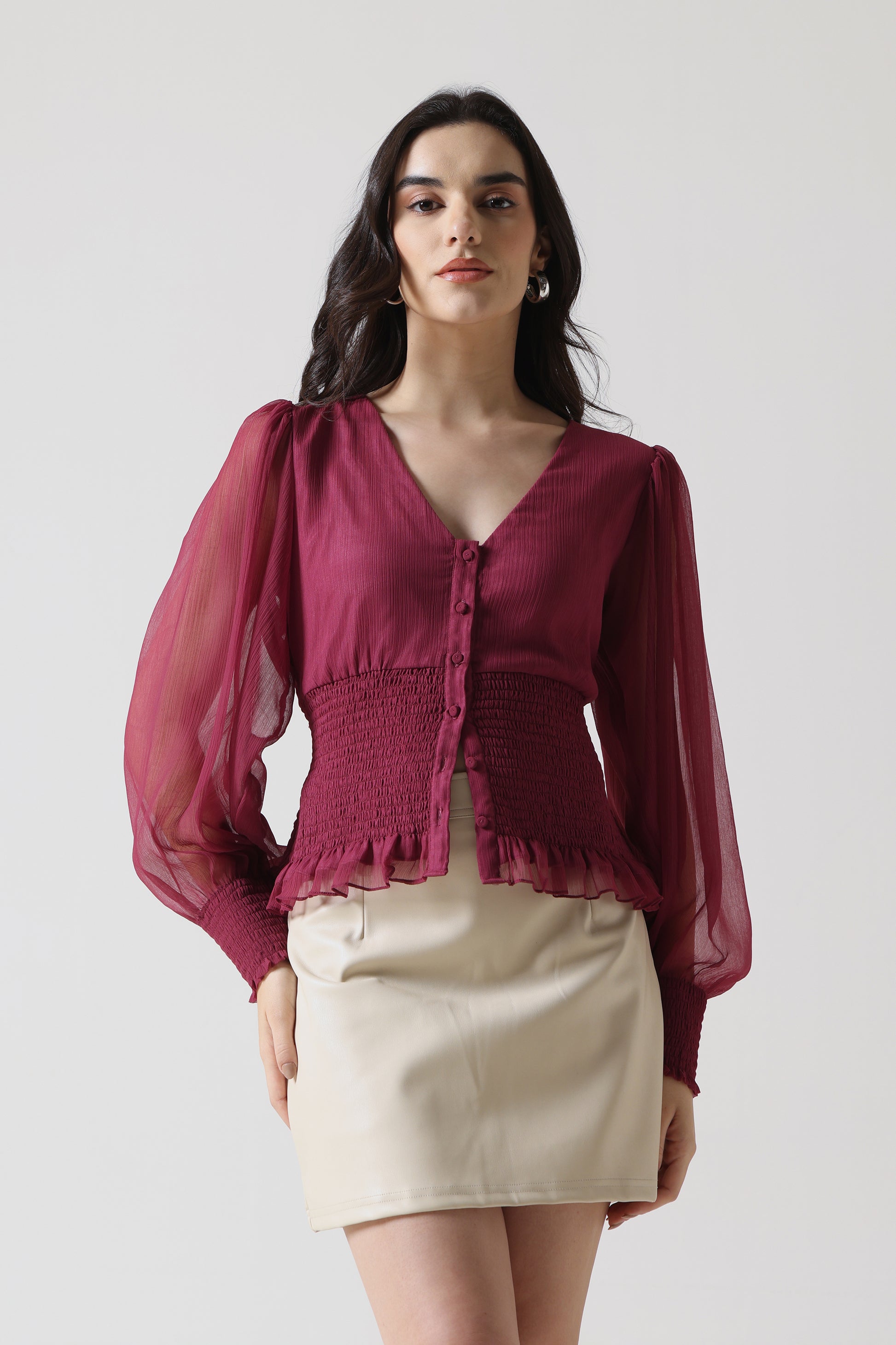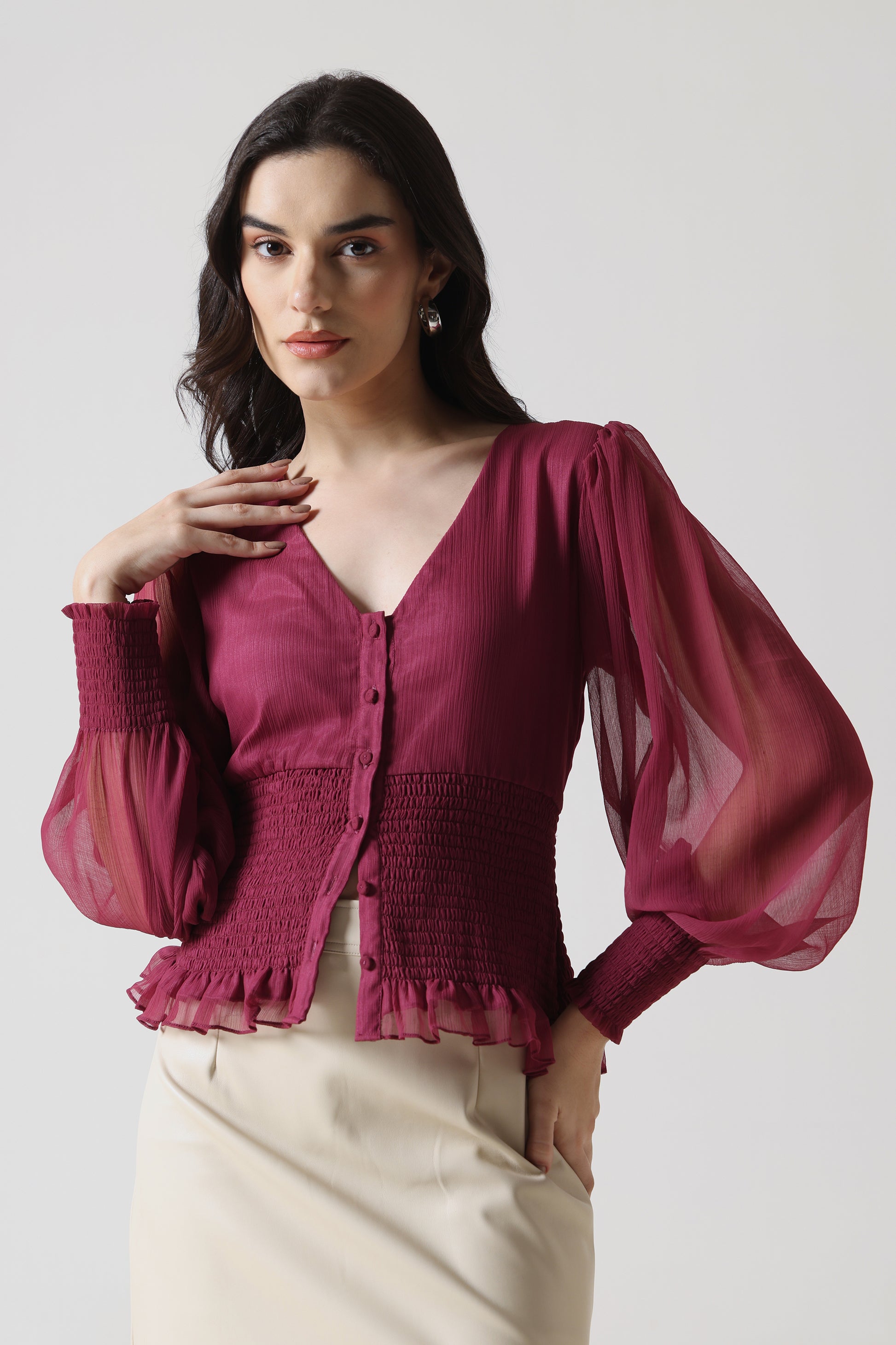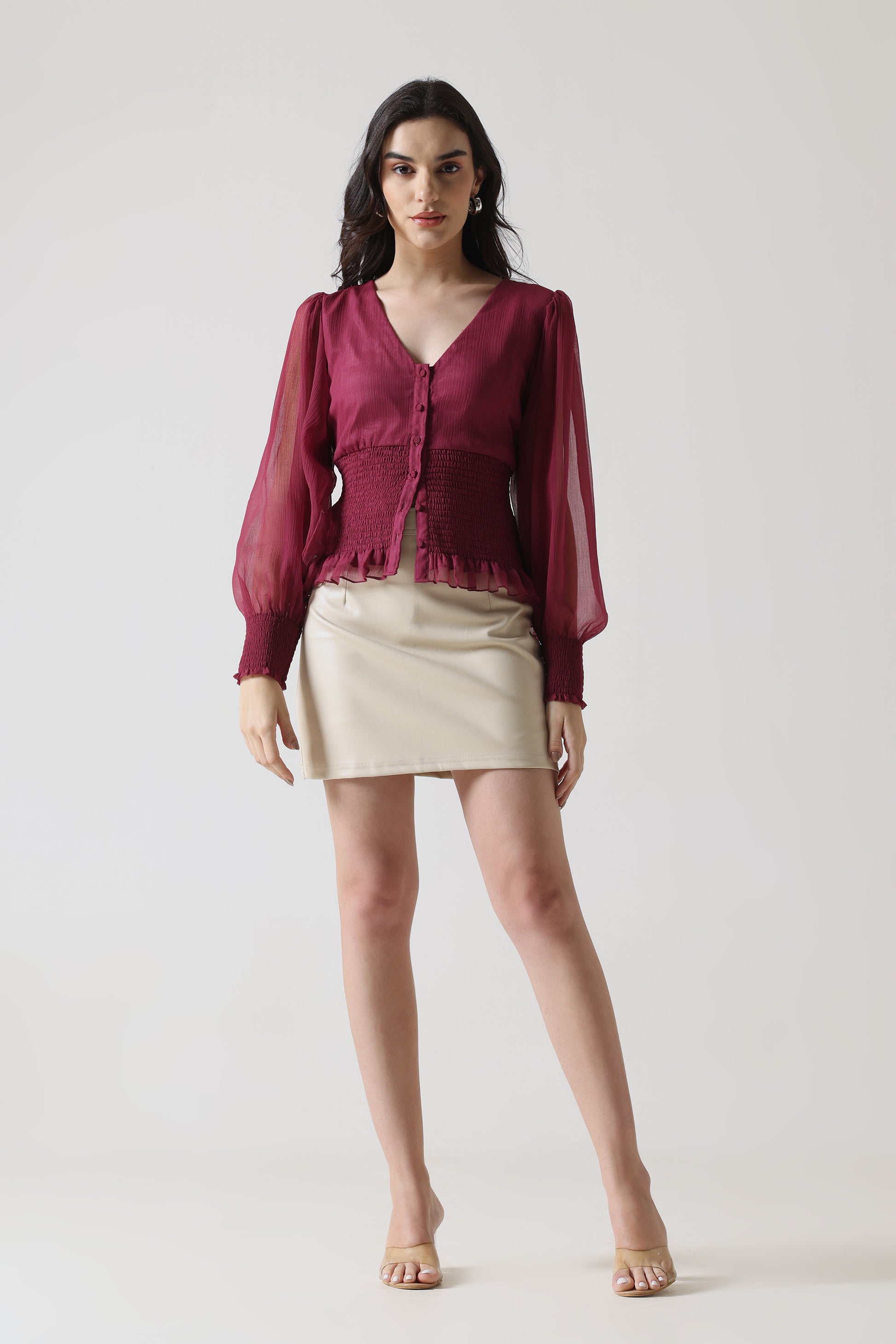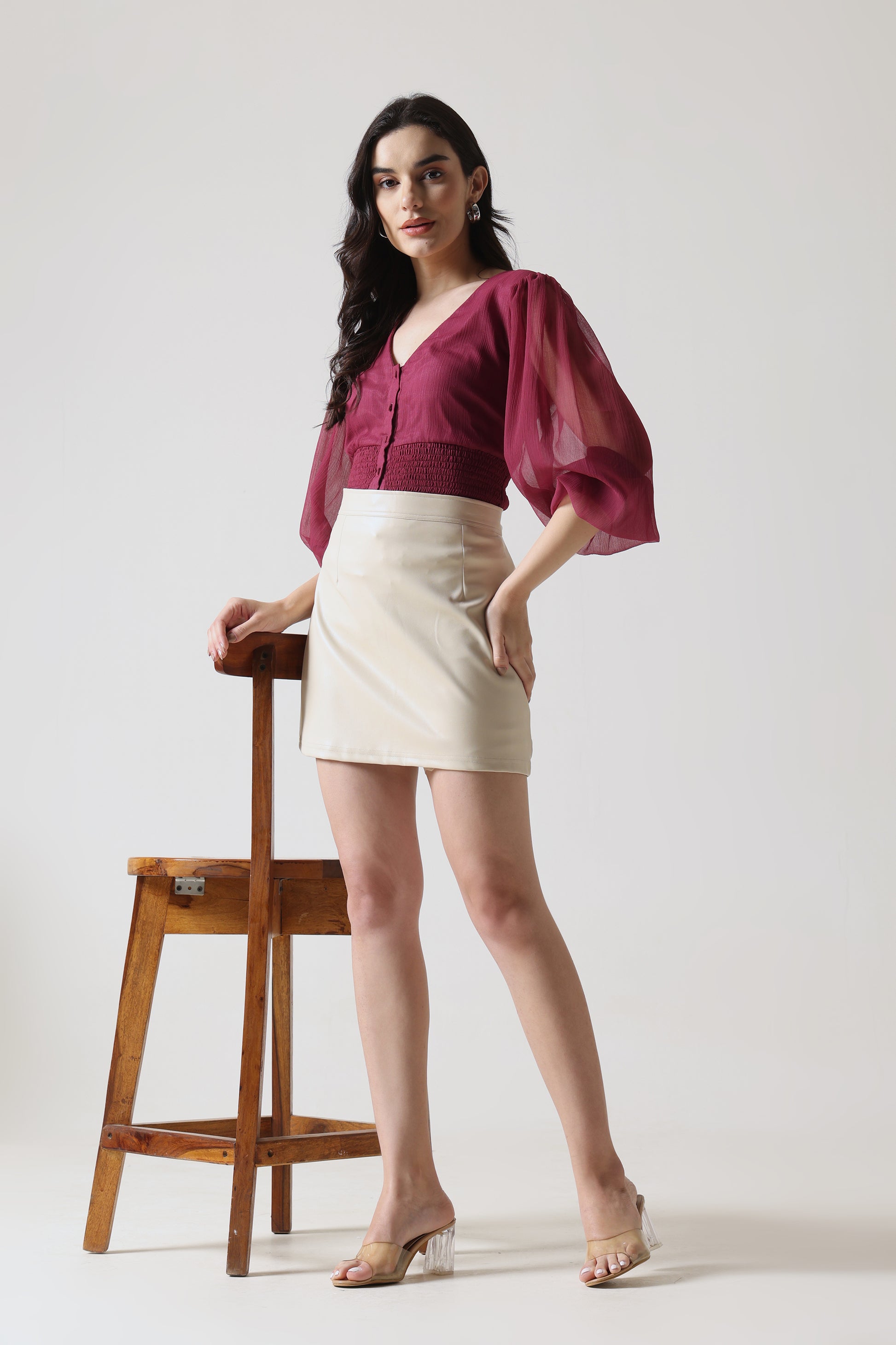 Style with high-waisted trousers or a mini skirt and gold hoops for an elegant evening look.
